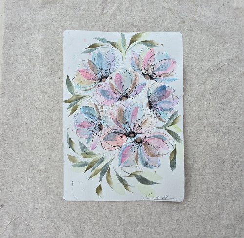 Flowers have always been a language for me. Through flowing washes, delicate layers of colour, and expressive ink lines, I allow each piece to unfold naturally on the paper.