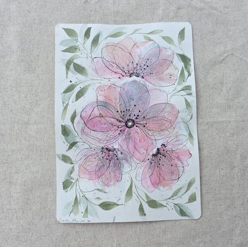 Flowers have always been a language for me. Through flowing washes, delicate layers of colour, and expressive ink lines, I allow each piece to unfold naturally on the paper.